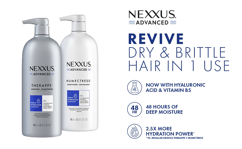Nexxus Advanced Therappe & Humecttress, hiện có công thức với Axit Hyaluronic, Vitamin B5, Elastin và Keratin Protein, là hệ thống dầu gội và dầu xả chất lượng thẩm mỹ viện được thiết kế để phục hồi và dưỡng ẩm cho tóc khô trong 48 giờ. Nexxus tiếp tục đi tiên phong và đổi mới, tạo ra sản phẩm chăm sóc tóc thủ công lấy cảm hứng từ các thành phần mạnh mẽ nhất của tự nhiên. |