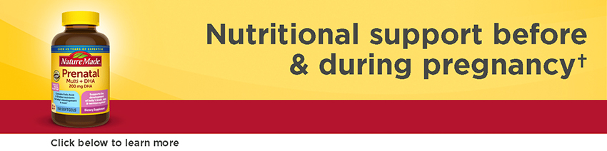 Nature Made ® Prenatal Multi + DHA Liquid Softgel vitamin tổng hợp là lý tưởng cho các bà mẹ tương lai và phụ nữ đang cố gắng mang thai đang tìm kiếm một chất bổ sung trước khi sinh với khả năng hấp thụ axit folic và sắt đã được chứng minh lâm sàng bao gồm axit docosahexaenoic (DHA), một loại omega-3 quan trọng axit béo. Việc bổ sung vitamin tổng hợp trước khi sinh hàng ngày trong suốt thai kỳ là rất quan trọng để giúp hỗ trợ sức khỏe của người mẹ trong thời kỳ mang thai và sự phát triển của em bé. Nature Made Prenatal Multi + DHA kết hợp 18 chất dinh dưỡng thiết yếu của một loại vitamin tổng hợp trước khi sinh với 200 mg DHA chỉ trong một viên nang mềm được bào chế đặc biệt để hỗ trợ sự phát triển não bộ, hệ thần kinh, xương và mắt của bé.